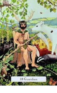 This Guardian is not about having. He is about serving. This is a true king, a king of natural abundance and of integrity. He sits half naked with nothing and yet has everything.