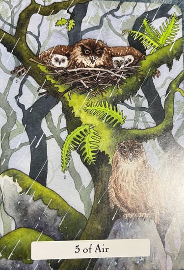 This is a beautiful and gentle closing. The Five of Air is not a call to suffering—it’s a clarification of choice. I can continue to make choices driven by pain and a subconcious need to suffer. The Guardian chooses conscious, sacred trade-offs based on integrity. What I take on, what I give myself to, what I serve will create my character and my life. If I release this soul contract I give up the structures that came with it, and consciously now must make new choices.