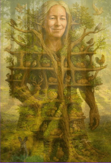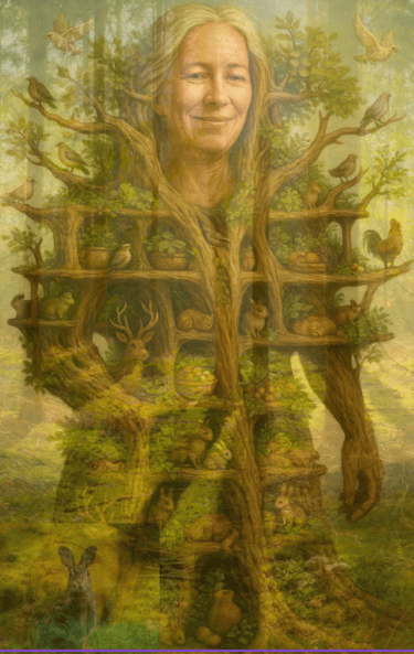 And I saw I wasn't just releasing, I was forming something new - a structure that can hold lots of animals, fruit, abundance. I was becoming a container—not of wealth in the material sense alone, but of life. I'm forming an internal shape that can carry love, spirit, nourishment, and belonging. I am no longer the leaking vessel of the Ace of Cups.