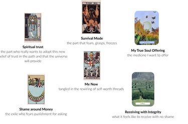 The holding structure, (i.e. what I had recieved in my breaking past life soul contracts constellation, myself as a living structure holding so much abundance) - but in this constellation I received sadness, heaviness. And the Page of Swords reversed - anxiety, uncertainty, holding back, self-criticism.