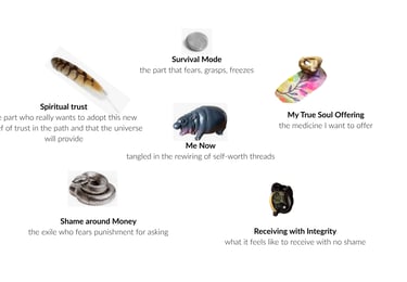 I asked to step into a new structure of abundance. What came forward was that first, there is the unmaking of the old structure’s scaffolding. I'm still merged with Survival Mode, there is still an Exile who carries self-worth beliefs that make holding abundance impossible. These aspects must be dealt with first, I'm trying to jump ahead when I've only been working with these financial constellation parts for about a week now.